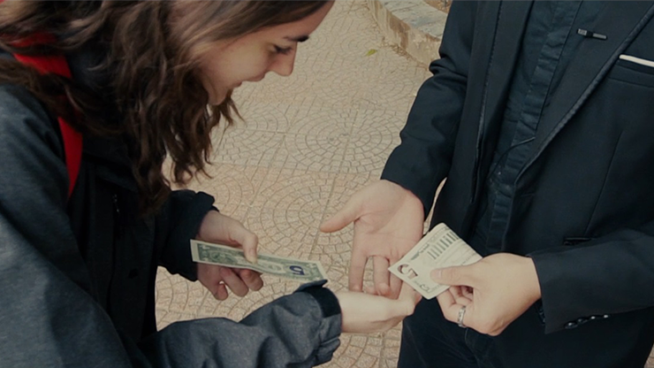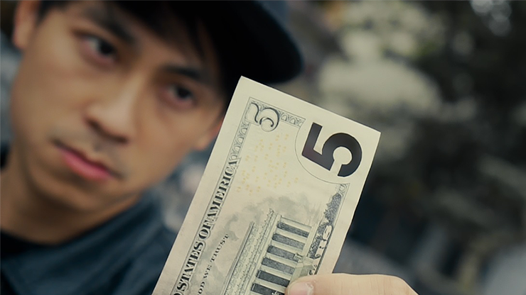 Two bills ($1 and $5) are removed from your wallet and presented to the audience. You ask a spectator to hold the $1 bill and you hold onto the $5 bill. Then, with just a little touch of these two bills together and a magic snap, a number 5 is now printed on the $1 bill! And that's not all - the 5 is GONE from the $5 bill - it is now just a hole! The spectator can then examine the money that they are holding in their own hands as much as they want, and they absolutely pause in stunned silence by what has just happened.