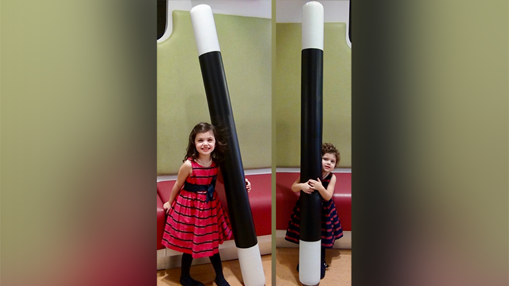 The best new funny wand for your show. A gigantic inflatable wand that packs flat and inflates to 6 feet tall! (2 meters!) Your young child assistant waves it but it is too big. It's hilarious!