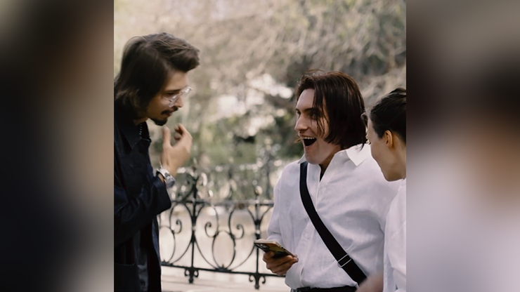 Magician doesn't touch the phone or look at the screen, only tells them what to do.