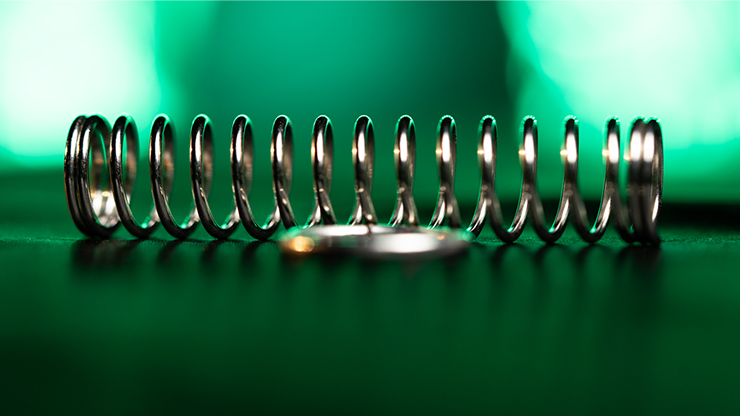 Spring Puzzle starts by showing a solid spring and a ring. You hand the ring to someone, and they will soon notice that the ring has been locked onto the spring! It seems impossible to remove. They hand the ring and spring back to you. You are then cleanly and easily "melt" the ring off of the spring like magic! They will not believe their eyes!