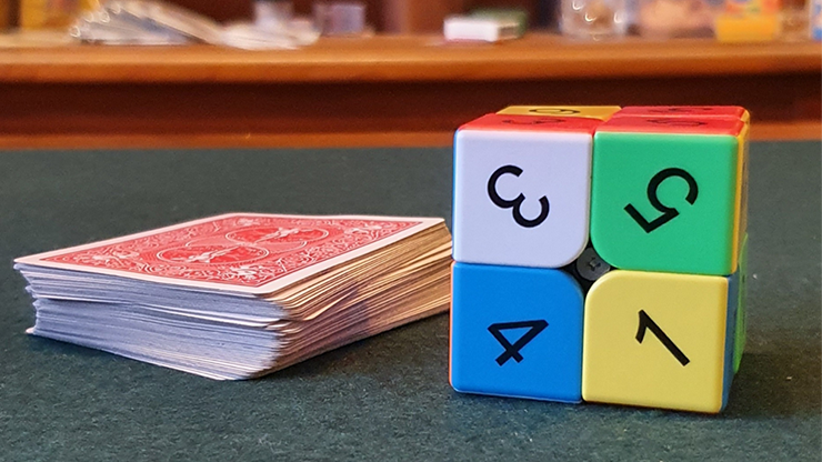 Explain the idea: they add up the numbers and count this many cards from the deck. The spectator turns over the cube revealing the numbers, counts down the number of cards he ended up with and ends up with one card.