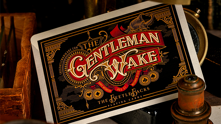 The Beetle Backs, presented by The Gentleman Wake and designed by Widakk Design, is the culmination of a two-year long effort to create a deck of cards perfect for collectors, players and magic enthusiasts everywhere. Classic and beautiful, evoking turn-of-the-20th-century style and elegance and the finest modern handling and playing card printing techniques, the Beetle Backs also tells the Kafkaesque tale of an embattled entomologist deep in study of his chosen field; the Dynastinae subfamily of scarab beetles.