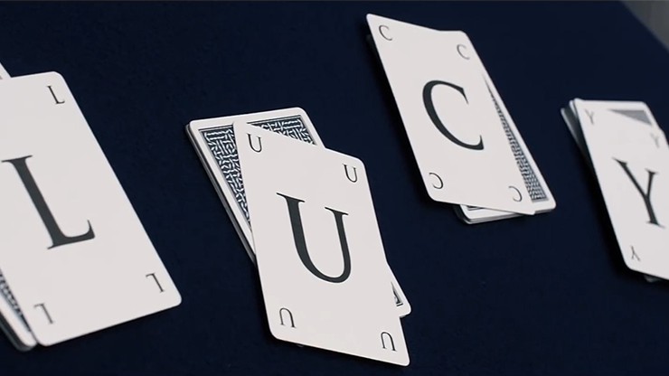 Poker sized, printed by USPCC on their premium stock, but with 52 letter cards instead of the traditional card faces, the deck allows you to perform magic that will connect with your audiences in new and powerful ways. Modern audiences enjoy card magic but, increasingly, the actual cards themselves are stripped of the interest and relatability they once had. It is asking a lot to expect audiences that are unable to name the four suits, or to know how many cards are in a deck, to be as deeply impressed by dealing a royal flush from a shuffled deck as they should be. Picture instead dealing their name from a shuffled deck. Picture finding not just a random card they have chosen, but their initials. Having them secretly pocket the letters that make up a city they have always dreamt of visiting and being able to whisper it into their ear.
