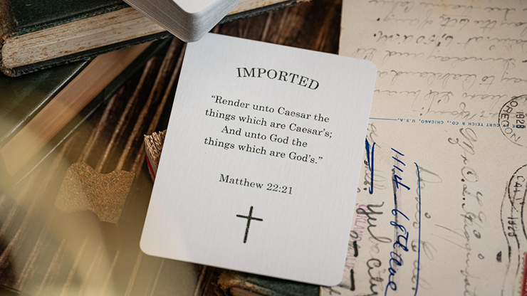 Inspired by classic decks from the golden age of playing cards: Imported Playing Cards is a fully custom deck of poker-size playing cards drawn by hand in a warm, vintage style and features standard re-drawn courts, pips and Aces in a velvety soft tuckbox drawn in the style of an antique tax wrapper.