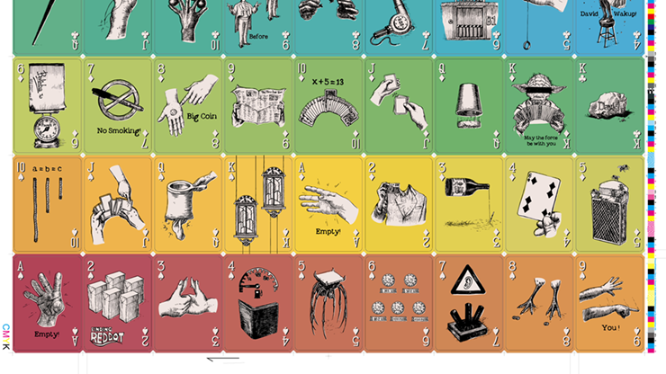 The first deck made by magicians for magicians! Not just a deck of 54 drawing cards, but a deck that is meaningful only to magicians! Every card has a hidden gag only known to magicians!