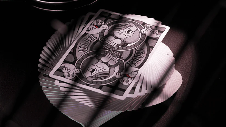 Each number card features atypical pin placements, which are adorned with 4 unique motifs representing the suits. Each motif reflecting the harsh and morbid themes of the darker films produced by studios.