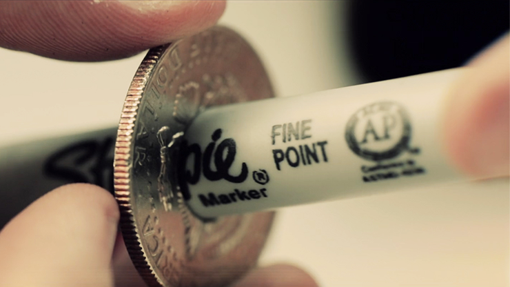 An easy-to-do miracle that allows you to push a Sharpie pen straight through the middle of a borrowed signed coin. A never-before-seen method means that you can now show both sides of the coin at all times before, during and after the effect.