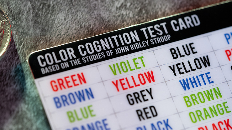 Stroop Tests. You've seen them across the internet, but probably have had no idea what they're called. Chroma disguises itself as a basic Stroop test designed to test cognitive ability. But this is all you need to reveal the thoughts that only exist in your spectator's mind - it's "Stroop-pidly" powerful.