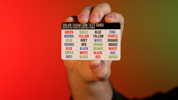 You begin by asking them to think of a color and imagine that word, big and bold right in front of them. With a timer and the Chroma card, you test them on how quickly they can find their word in various colors. Without them ever saying a word, you know exactly what they are thinking.