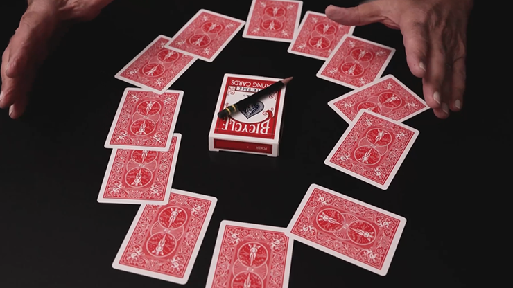 A pencil is now placed on top of the card box and using your psychic powers you cause the pencil to mysteriously start to rotate like a clock dial. Your audience will gasp as the pencil starts to rotate and eventually stop at the selected card.