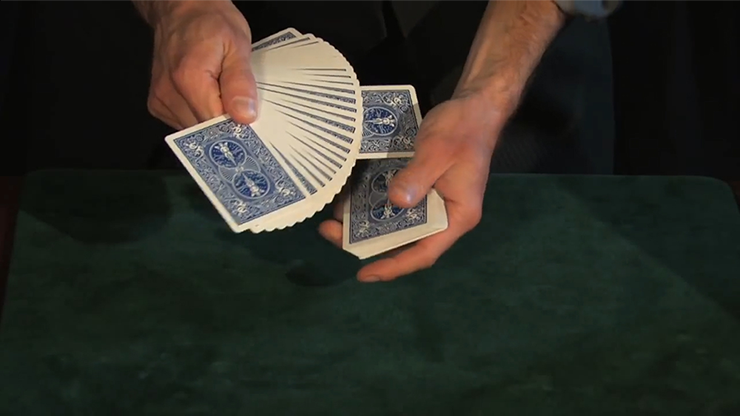 The performer pushes a single playing card through the table. The effect is repeated. On his second attempt, the entire deck travels though the table - except for one card - the signed selection.