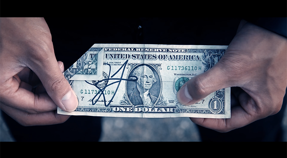 Imagine you fold a corner of a signed bill, and the corner slowly crawls across the bill at your command. The corner will fuss wherever you want on the bill, then it can be immediately hand out to spectator as a souvenir.
