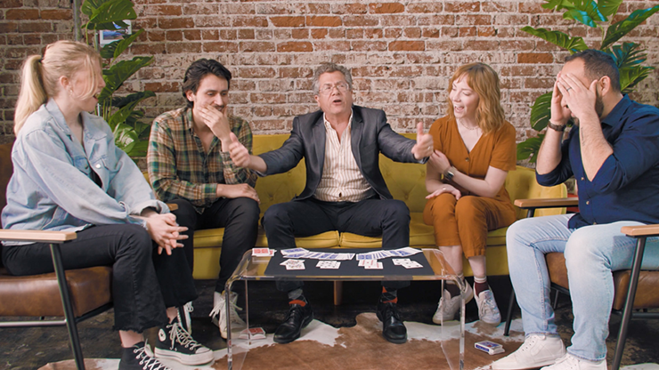 This is already a strong moment on its own. But they will fall out of their chairs when you hit them with the surprise ending. The rest of the blue cards are flipped over and shown to be completely blank. All these blue cards can be handed out for examination. There's nothing to find.