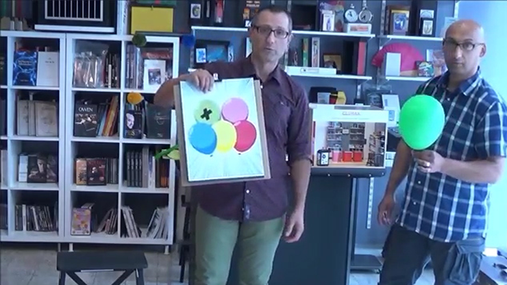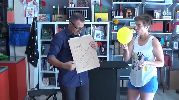 You explain that five balloons are drawn on this sheet of paper. But you specify that on ONE single balloon, you drew a cross with a big marker. You remove the clipboard from the envelope and, with no suspicious moves, a cross is shown on the drawing of the selected balloon!
