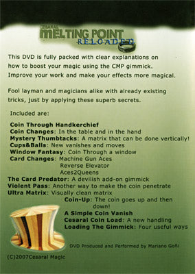 This DVD is fully packed with clear explanations on how to boost your magic using the CMP gimmick. Improve your work and make your effects more magical.