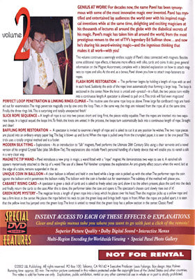 For decades the name Pavel has been synonymous with some of the most innovative magic ever invented. Pavel has mystified and entertained lay audiences the world over with his inspired magical inventions while at the same time, delighting and exciting magicians at his thousands of lectures all around the globe with the diabolical secrets of his magic. Pavel's magic has taken him around the world, from the most prestigious venues to the set of TV's legendary Ed Sullivan show...and now he's sharing his award-winning magic, and the ingenious thinking that makes it all work, with you!