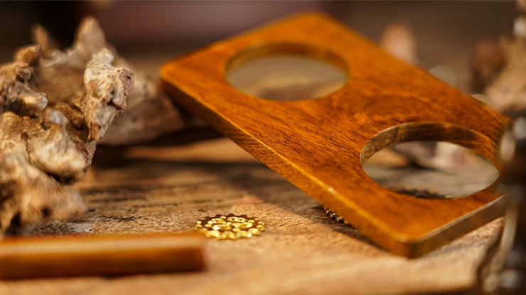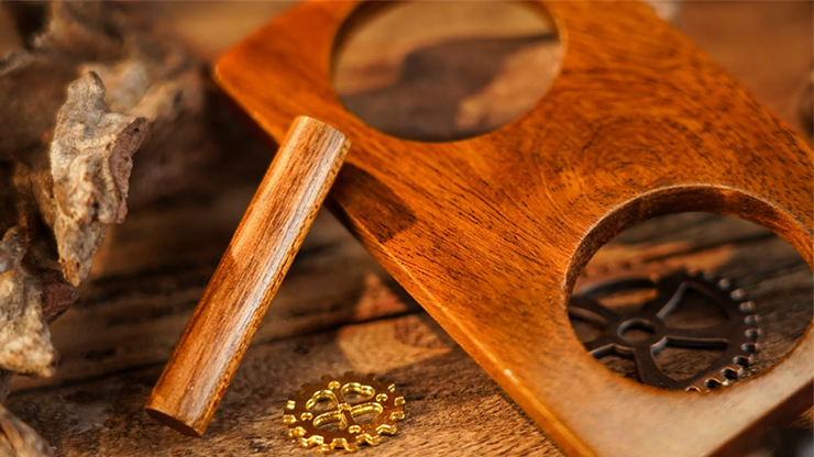 The magician displays a wooden stick and a wooden handcuff, inviting the audience to examine both freely. The magician holds the stick delicately between two fingers, then the solid stick visibly and smoothly passes through the wooden handcuff.