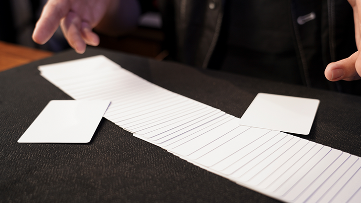 With a snap, the magician reveals that it is all an illusion. The face-down card turns out to be blank, and the entire deck becomes blank as well. The thought-of card was never in the deck-it has been elsewhere all along-perhaps in a wallet, under a mat, in a pocket, or even on the spectator's chair.