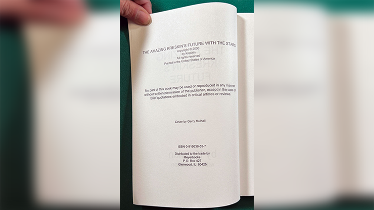 First Edition. Written by Kreskin and Bret Saxon. Published by Kreskin in 2000. 254-pages, 6"x9" softcover, perfect-bound. Every book has a bookplate, initialed by Meir Yedid, that states, "Purchased from the personal inventory of The Amazing Kreskin."