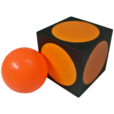 With magical finger snap, the jumbo cube changes into a real live ball, a large-sized orange ball that matches the painted on the cube.