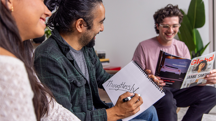 It almost feels unfair for your audience how direct and powerful "Glance" is. It takes just a few minutes to learn and plays to audiences of any size. There's no sleight of hand or short pages or glimpses or peeks. Nor are there any apps, batteries, or wifi that can fail at the worst time. They open the magazine, find a word and you know it. It's that straightforward.