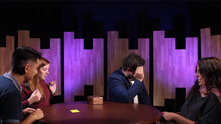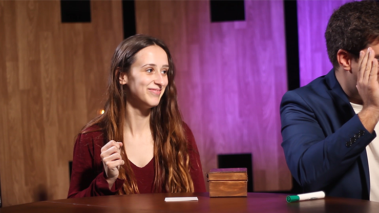 The spectator then mixes the cards and is asked to deal them, one by one, into the box. SUDDENLY the lid of the box SLAMS SHUT, as if telling the spectator to stop dealing. The magician asks the spectator to turn over the card they are holding in their hand... it is the signed card!