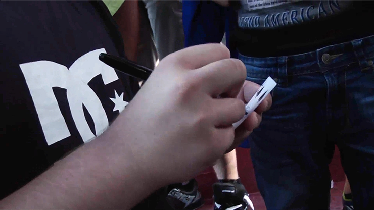 After a few moments of silence... the upper half of the deck eerily starts to MOVE... then slowly SLIDES away from the lower half! After the top half of the deck stops moving, there's a pause... then the CARD UNDER IT STARTS TO MOVE! This single haunted card slowly slithers and CREEPS away from the rest of the deck... then finally stops. Your spectator takes the card... it's the one she signed.