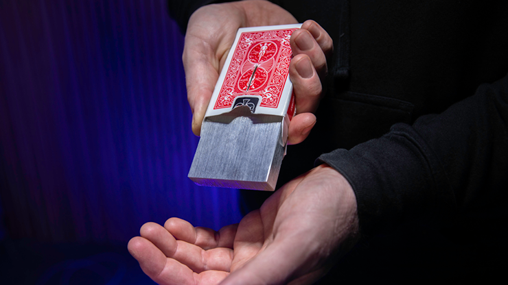 A quarter or knife is pushed through a playing card tuck box. This doesn't seem like that impressive of a feat until you open the box. Your audience won't believe their eyes when they see a solid steel block fall out instead of a deck of cards.