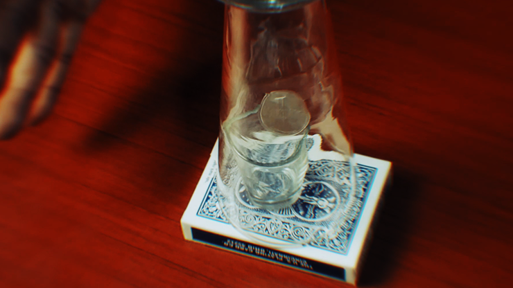 - A signed coin visually penetrates a solid glass, landing in a shot glass inside the larger glass!