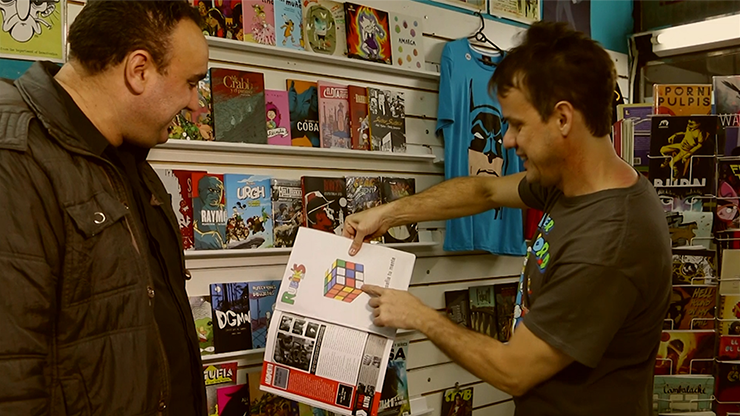 EFFECT 2: Show a completely flat magazine. Open it and show a page that advertises the Rubik's Cube. Close it and, after just a quick second, open it and the drawing of the cube materializes and comes into your hands! You then solve the Rubik's Cube in a very visual way.