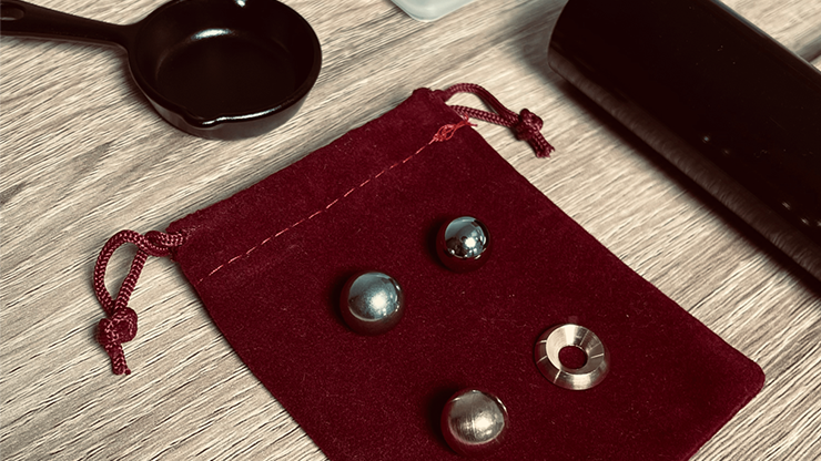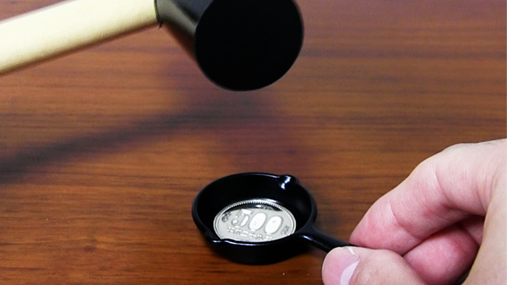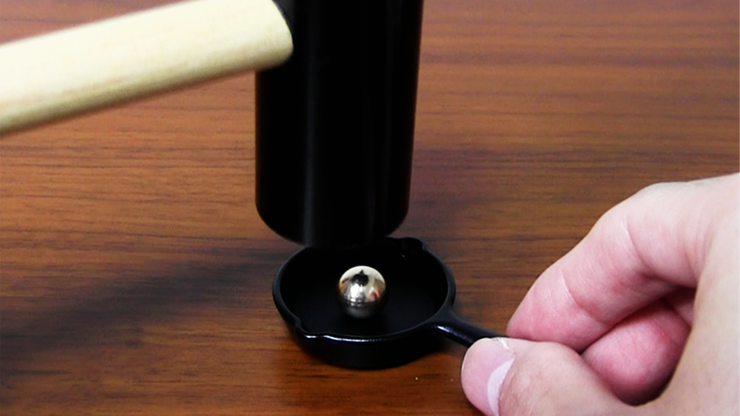 Places a metal ball on a miniature skillet. After heating the metal ball with a lighter, hits it with a Magic Hammer.