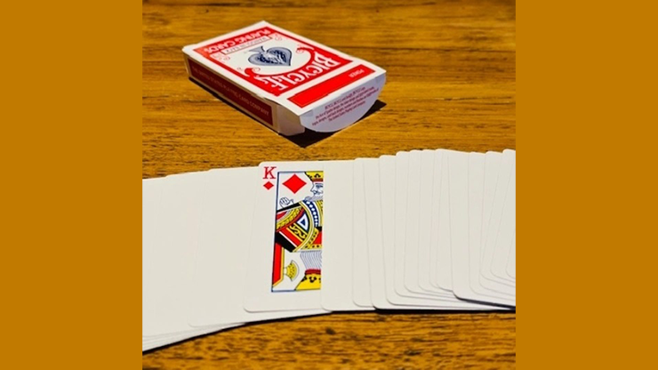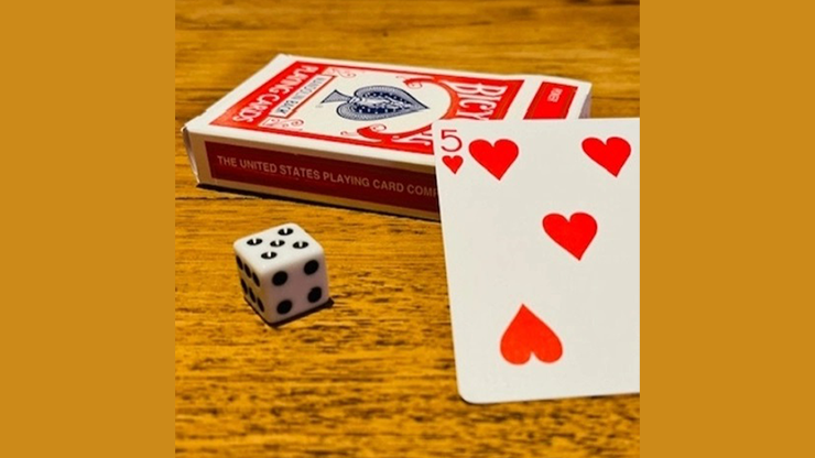 Have a spectator roll a die (e.g. FIVE) and then choose a suit (Hearts, Diamonds, etc.), in this case HEARTS. Then open the card box and take out a blank deck of cards. Go through the cards until there is one printed card in the deck - and that is the five of hearts! The rest of the cards are really blank.