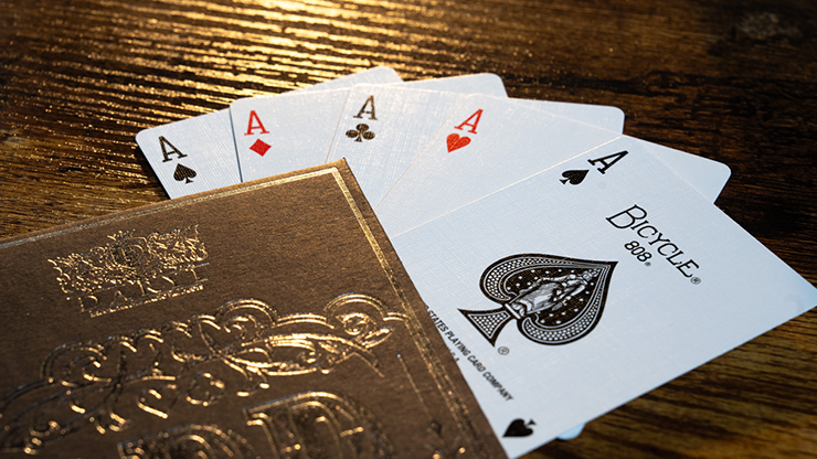 Four cards are displayed face up. One of the cards is freely selected by a spectator. The chosen ace is revealed to be "odd" because it's the only card with a RED back! ALL of the other backs are BLUE-backed!