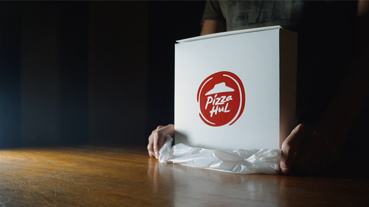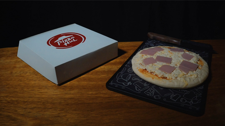 Show the box completely empty, close it and automatically your audience will be very surprised to see a real pizza appear.