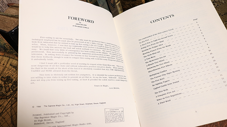 This rare booklet contains the routines and handling of Kazan. Also included are diagrams on how to construct a variety of performance props. Some of the topics included are: The Construction of the Fire-Eaters Torch, Eating Fire from the Hand, Burning the Tongue Alive, The Giant Blow-Out, The Mysterious Gas Jet, A Simple Fire Wheel, Multiplying Candles, The Fire Bowl, Lighted Candle from Pocket, The Fire Walk, A Complete Fire Act plus much more!!