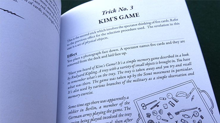 And it is a book full of tricks - effect and method - more than seventy items in nine chapters. Although the book doesn't shy away from sleight of hand, the emphasis is on concealed subtleties, little known principles, unsuspected gaffs.