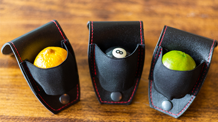 Pro Show Holder holds a shot glass, fruit, beer bottle, pool ball, deck of cards, etc. Loop for belt with press stud, or it can just hang on waist band or back.
