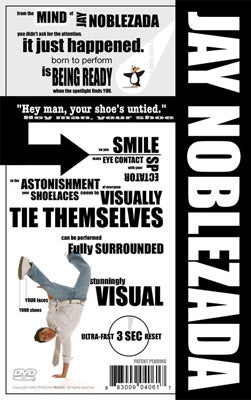 So you SMILE, make EYE CONTACT with your spectator, and to the ASTONISHMENT of everyone, your SHOELACES seem to VISUALLY TIE THEMSELVES.