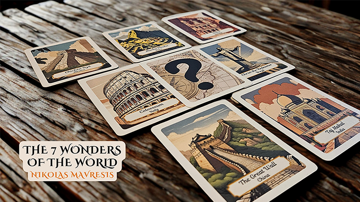 Take your spectators on a mental adventure to the Seven Wonders of the World! You introduce a packet of cards, each featuring a famous landmark and a single prediction card which is placed aside. You then invite your participant to choose one destination completely at random. You then show what's on the back of the prediction card, showing a QR code.