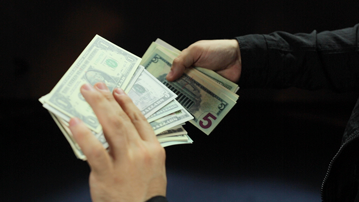 In a FLASH the ENTIRE deck of cards turns into a fat stack of 100, 50 & 20 bills!