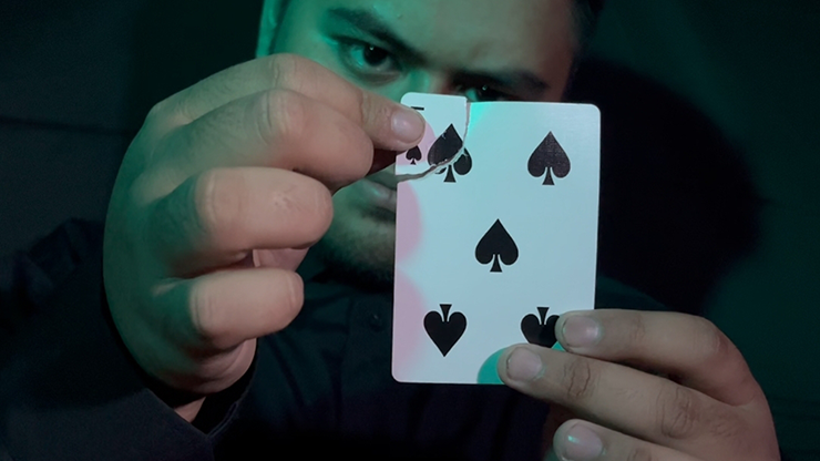 A classic stage magic effect involves the audience's chosen card being stabbed with a sword. The Sword King includes a close-up magic feature, with an image of a sword on the King of Hearts card, which will locate and reveal the audience's torn card.
