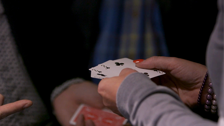 You show three red and three black cards. They are fairly, slowly mixed. Yet, each time, they unmix themselves with no suspicious moves or funny business. For the most impossible of endings, you repeat the moves, but with the cards face up! You'll even learn the powerful glass table handling where your audience can watch the cards from below a glass table.