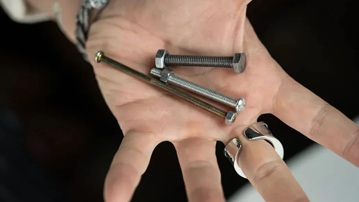 You hand a nut and bolt to an audience member and have them thread the nut partially onto the bolt to prove that everything is as it should be.