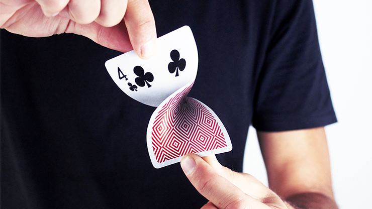 Uses perception distortion trickery to reveal a force card like never before! Use your favorite force with the Queen of Hearts or 4 of Clubs, then show a strange looking card that is just a jumble. Hold it up and just blow or twist, the card spins and magically reveals the card they were just thinking of. A simple shake and the strange card now becomes their selected card. A treat of physics and biology mixed with magic.